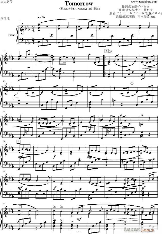 [钢琴谱]《机动战士GUNDAM 00》插曲--Tomorrow 动漫影视