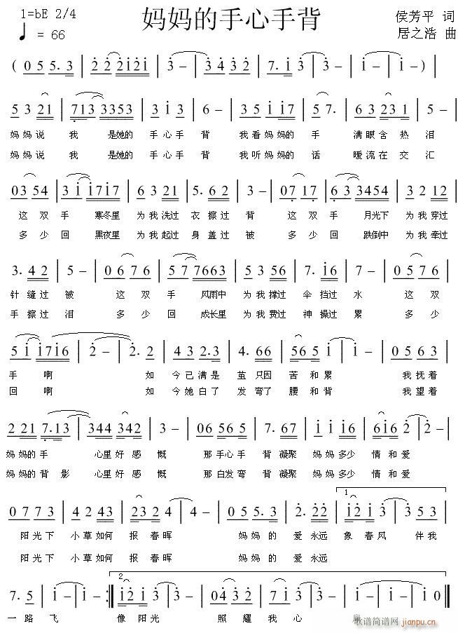 [七字歌谱]《妈妈的手心手背》 侯芳平词 居之浩曲