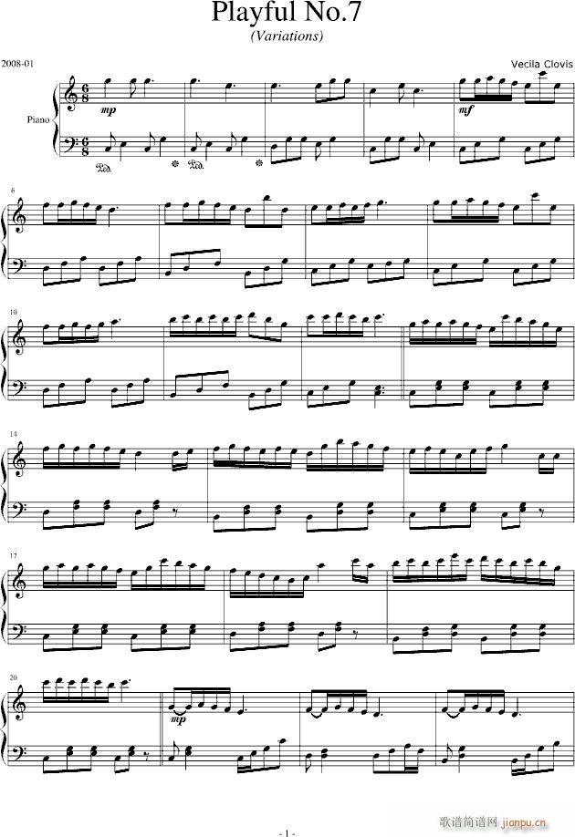 [钢琴谱]Playful No.7(变奏曲) Vecila