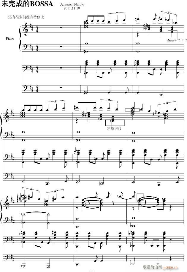 [钢琴谱]未完成的巴萨诺瓦 Uzumaki_Naruto