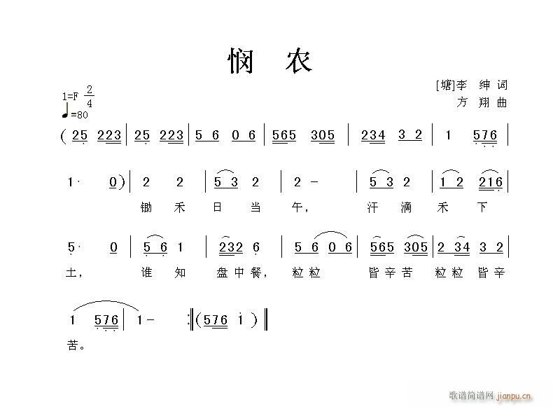 (伴奏版)李绅词,方翔曲,方翔与黄清林合编