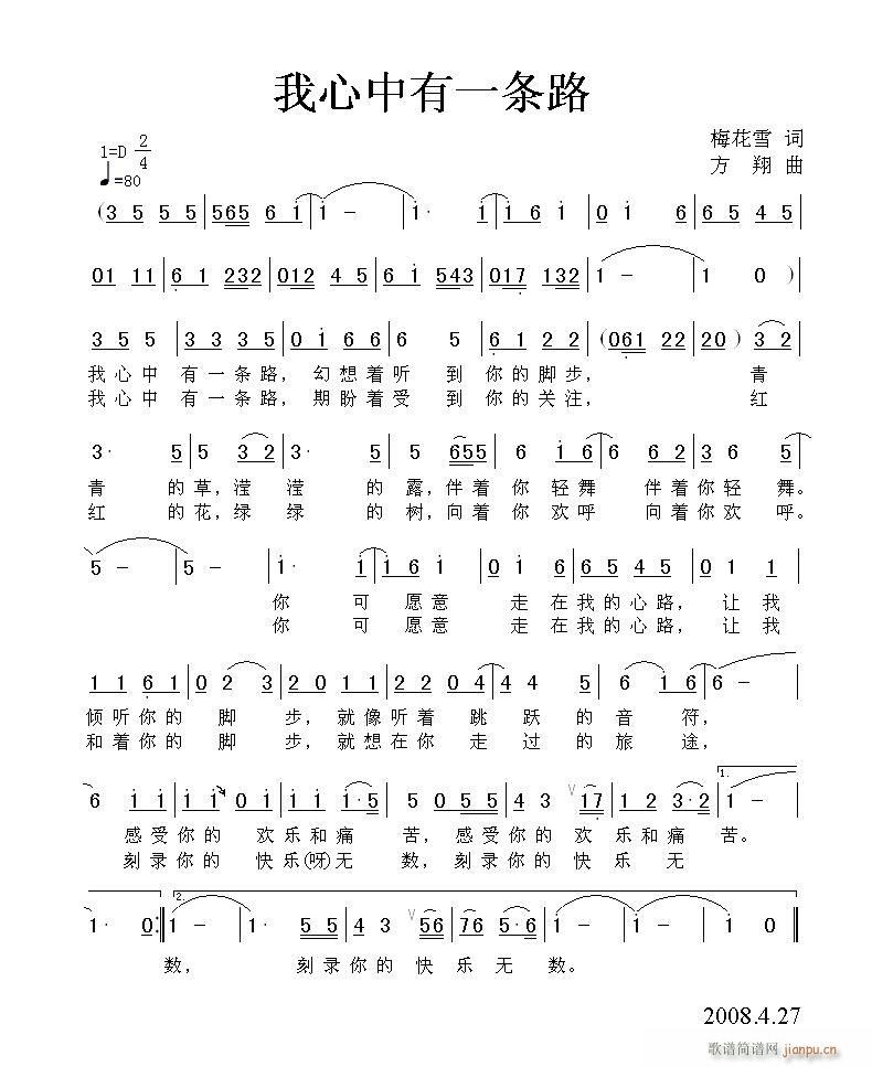 [七字歌谱]《我心中有一条路》梅花雪词 方翔曲 伴奏:林崇