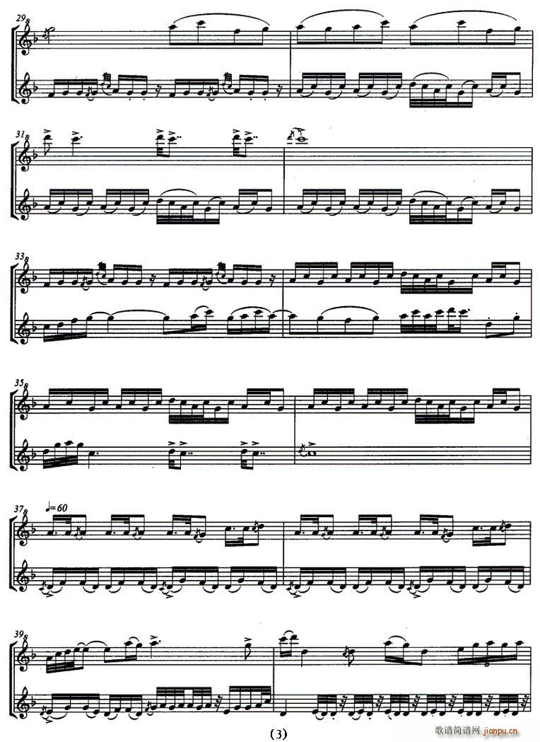 [笛箫谱]雁归草原(竖笛+箫 [五线谱])