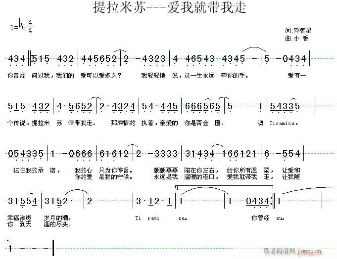 > 《提拉米苏---爱我就带我走》邓智星词 小香曲