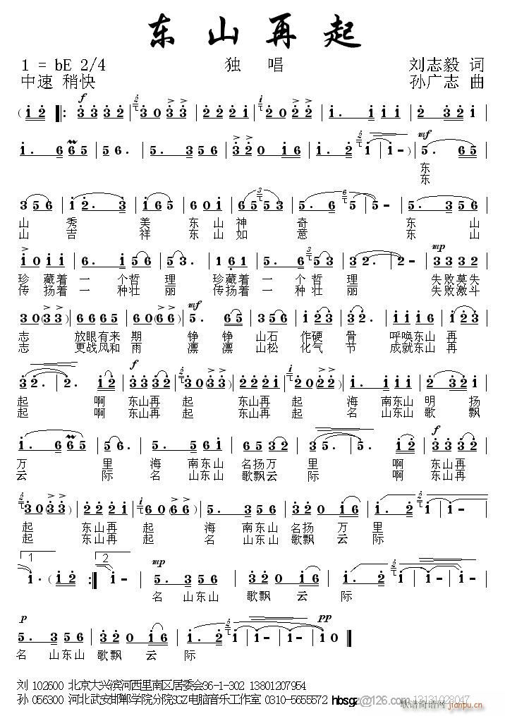 [九字歌谱][通俗] 征歌作品\东山再起(刘志毅词 孙广志曲).GIF