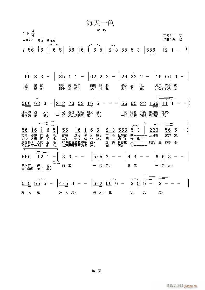 [四字歌谱][通俗] [原创] 《海天一色 》一方词 张敏曲