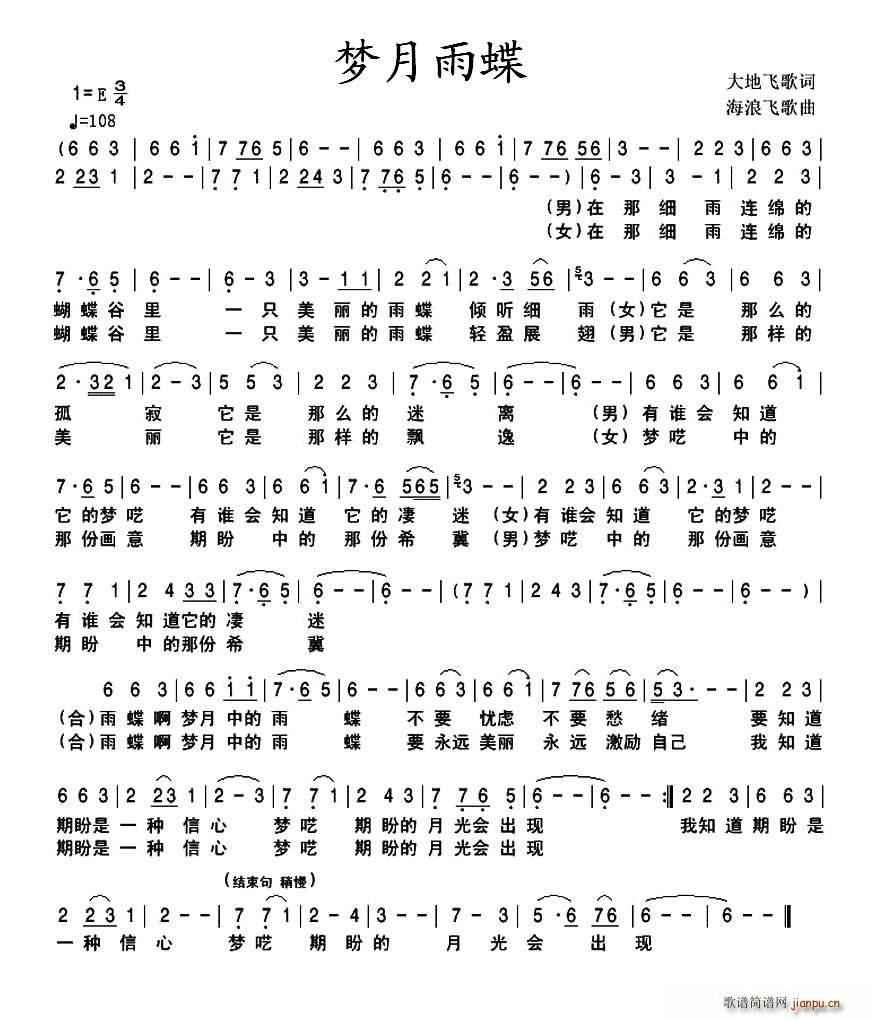 [二字歌谱]雨蝶(《还珠格格》插曲)