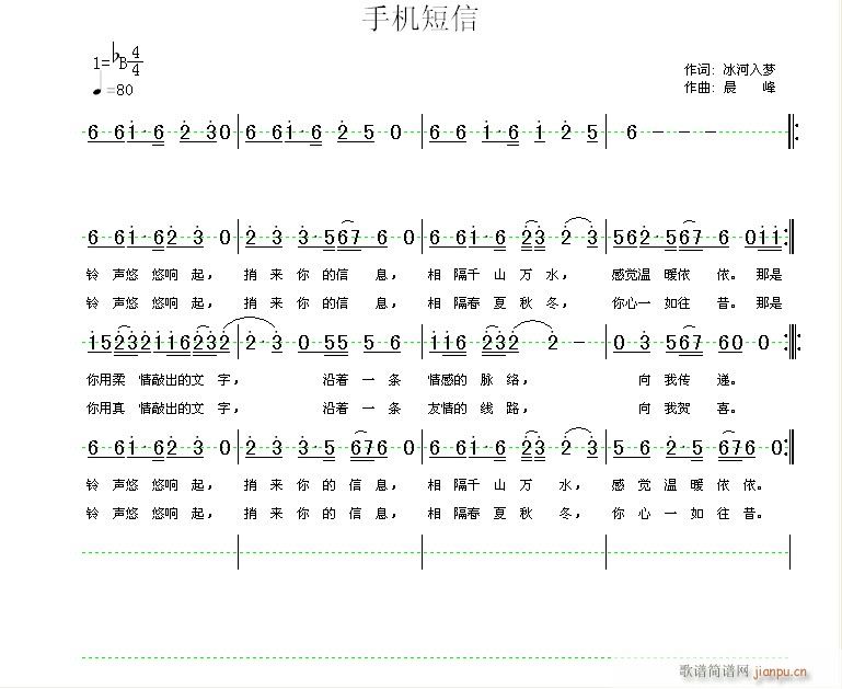 [四字歌谱][原创]《手机短信》词/冰河入梦 曲/晨 峰