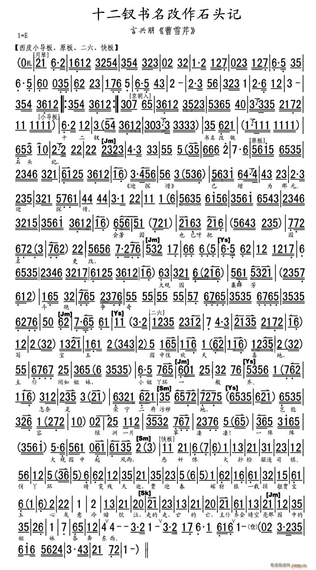 [十字及以上]十二钗书名改作石头记(《曹雪芹》选段、琴谱) 言兴朋