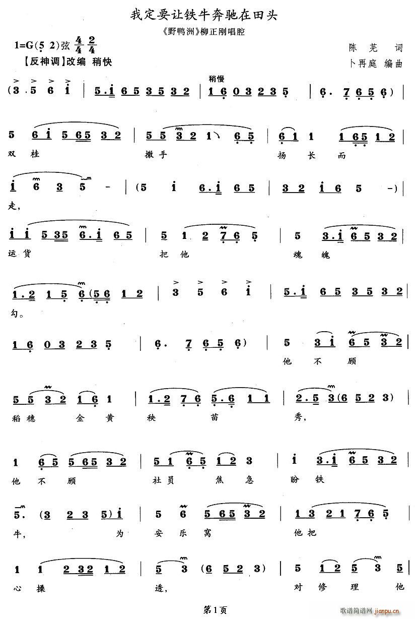 当前位置: 歌谱简谱网 > 十字及以上 > 我定要让铁牛奔驰在田头(《野鸭洲》柳正刚》唱段)