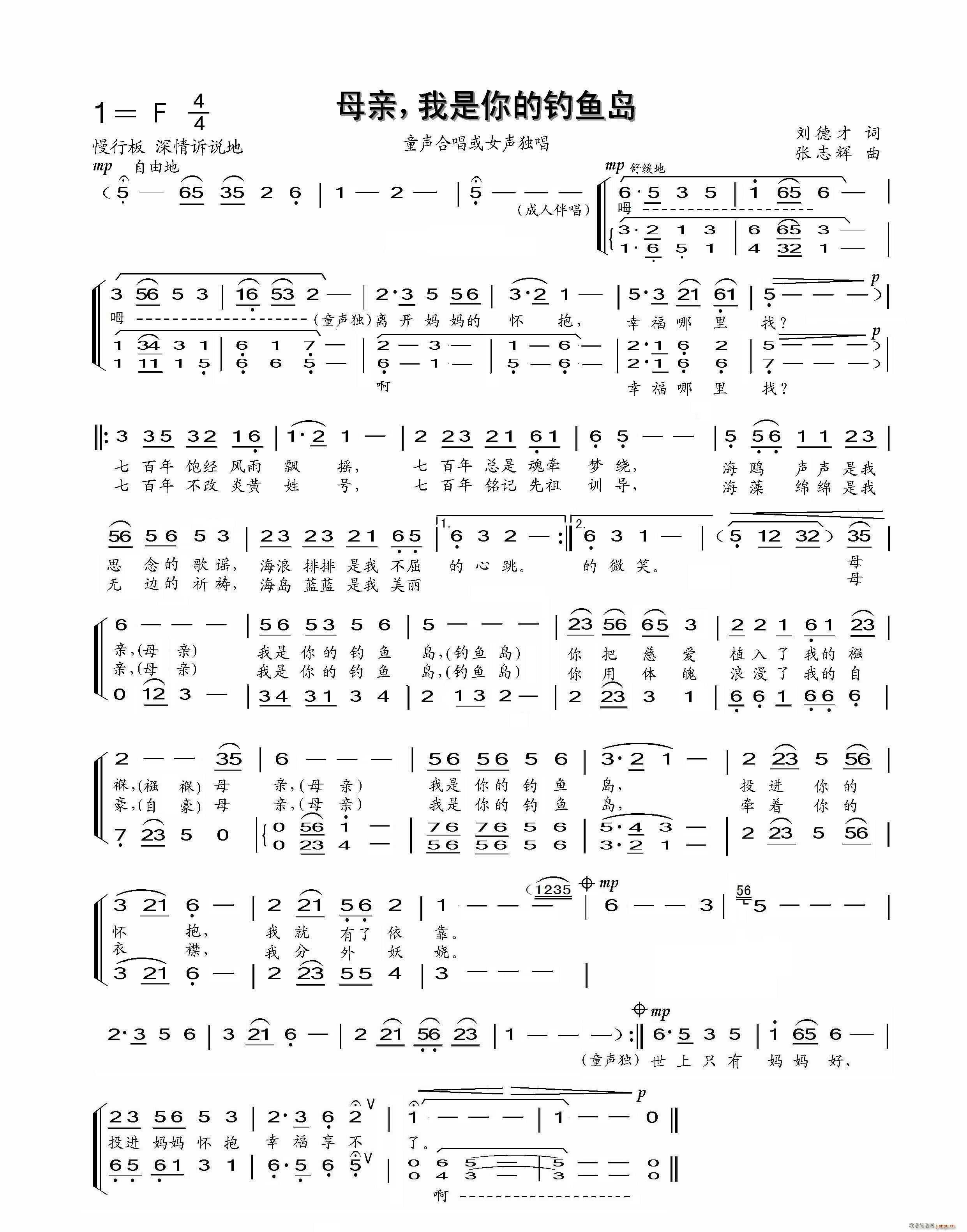 [八字歌谱]《母亲,我是钓鱼岛》 刘国亮