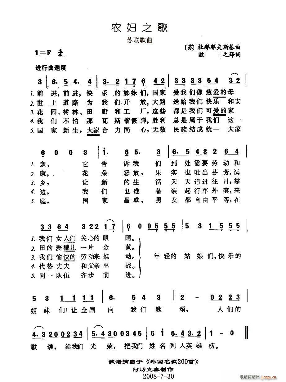 [四字歌谱]农妇之歌(前苏联)