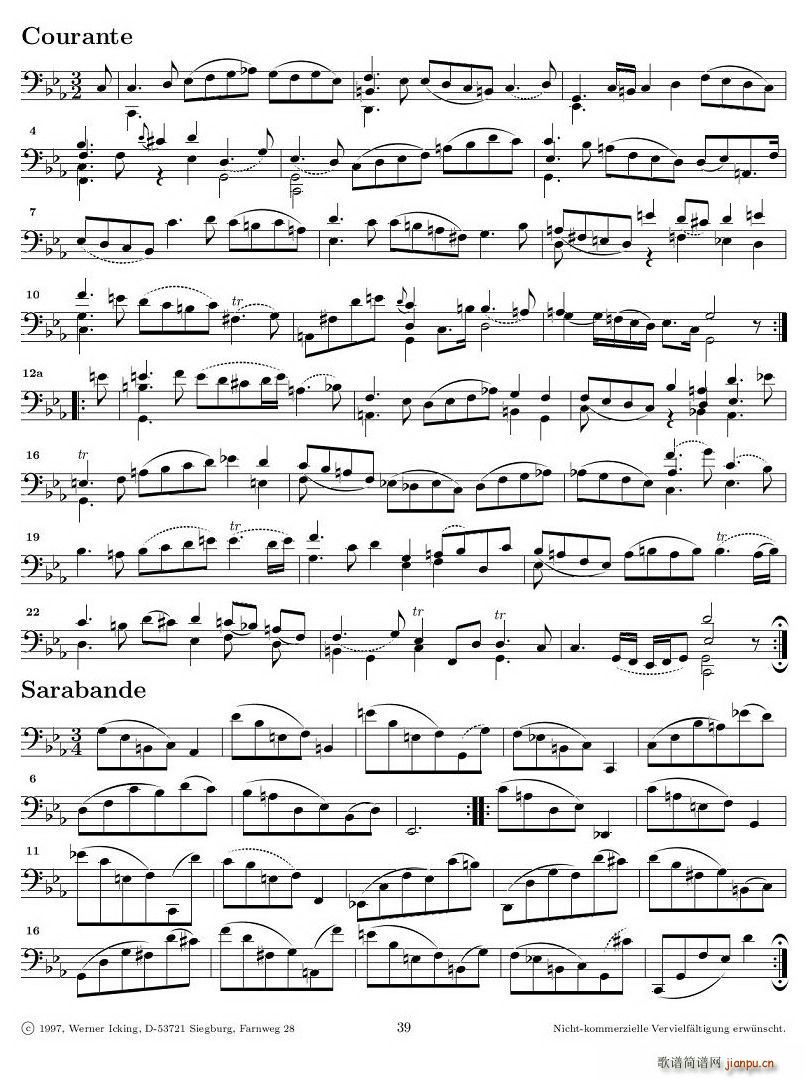 [大提琴谱]巴赫无伴奏大提琴练习曲之五