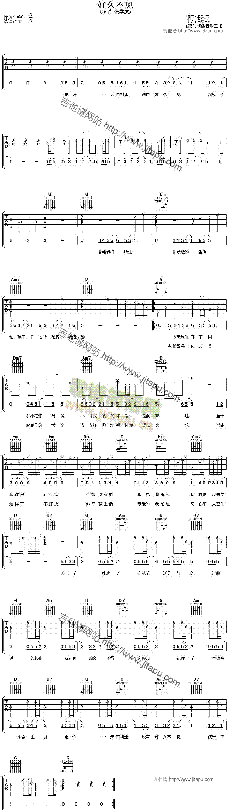 [吉他谱]好久不见 张学友