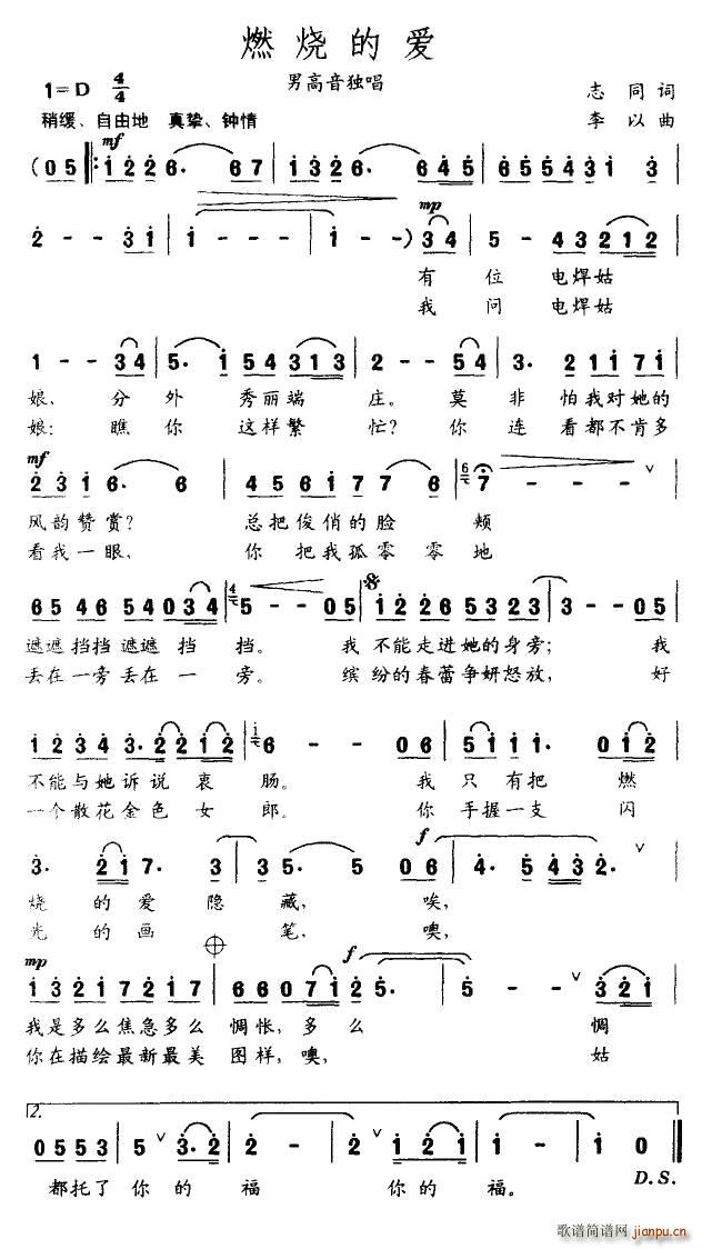 [五字歌谱]燃烧我的爱 乌兰托娅