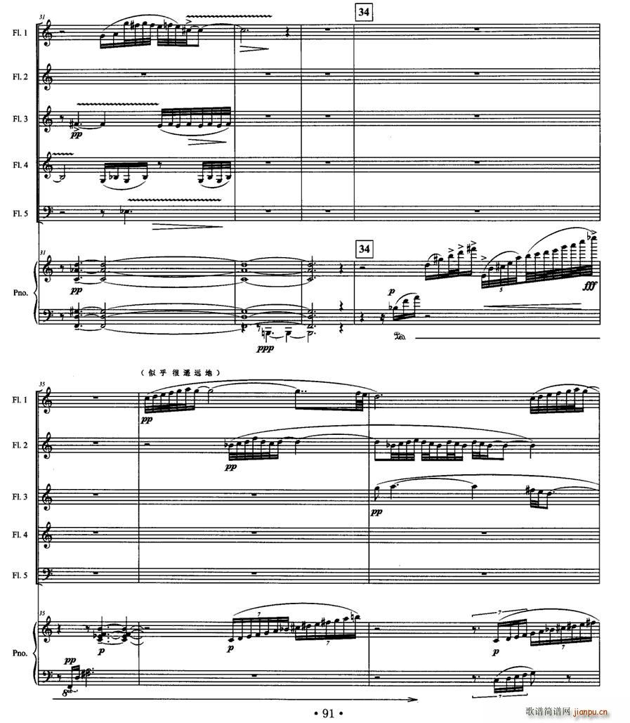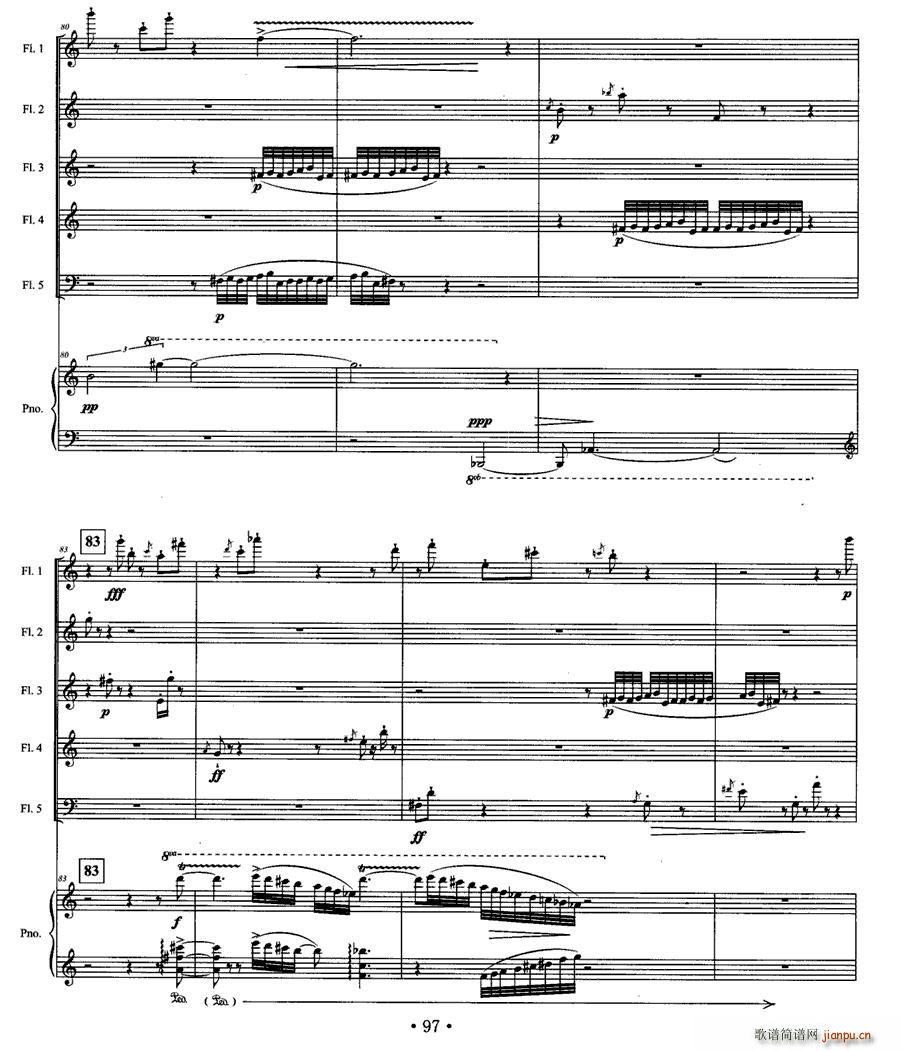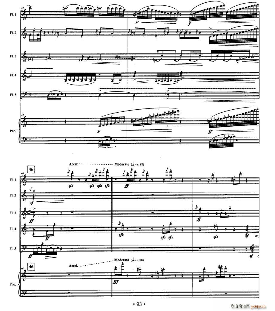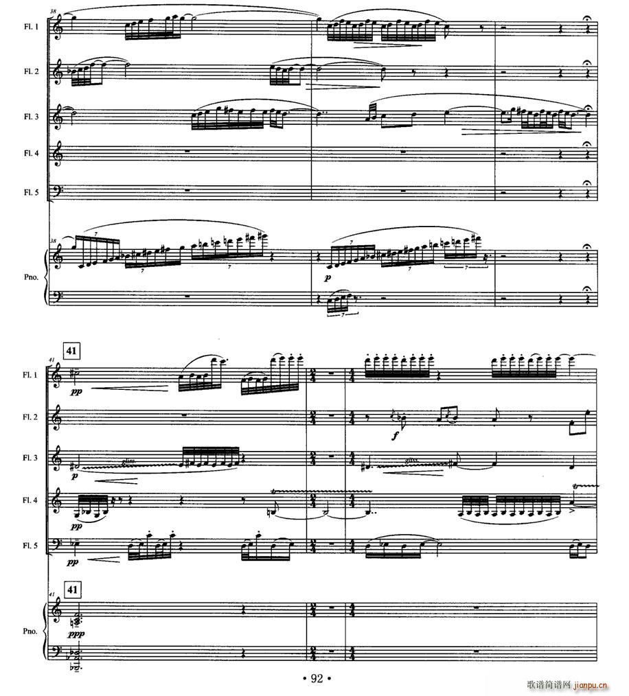 [笛箫谱]忆南国(五支长笛+钢琴)