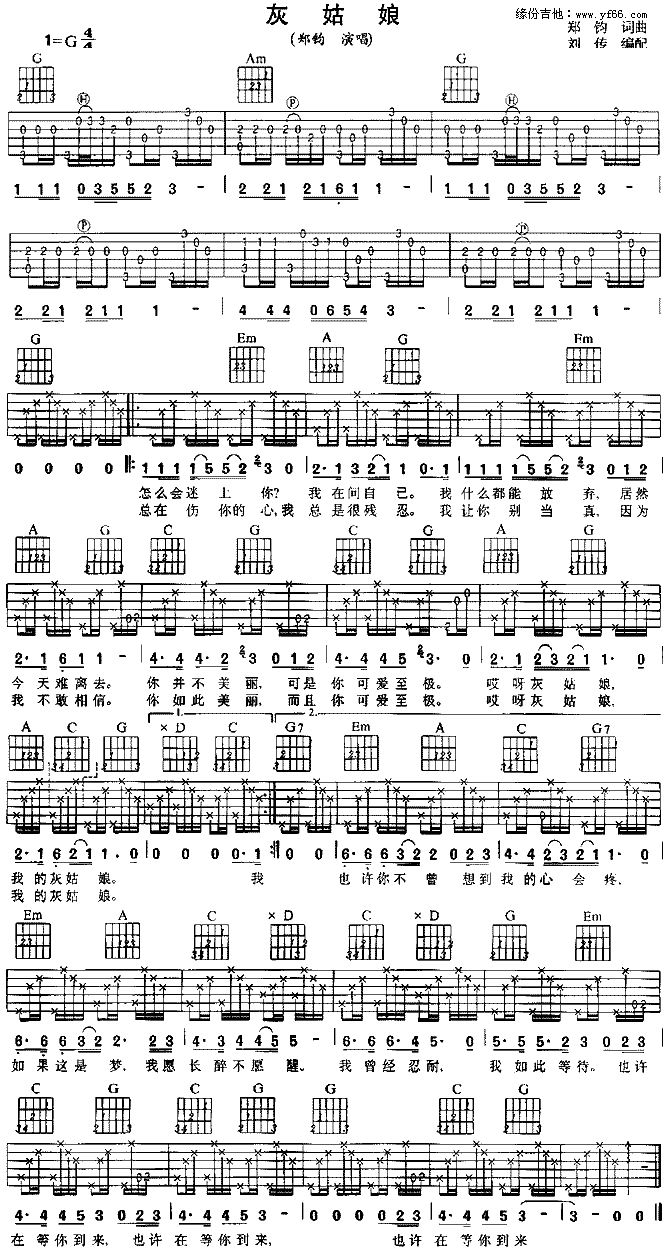 [吉他谱]灰姑娘 (郑钧 ) 未知