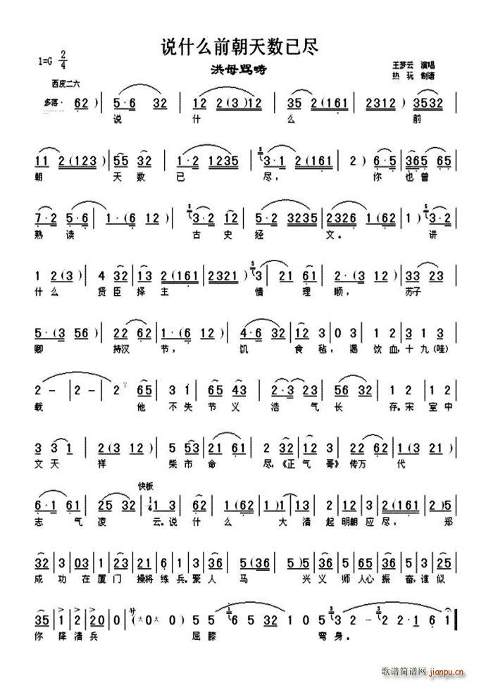 [四字歌谱]洪母骂畴 说什么前朝天数已尽 王梦云