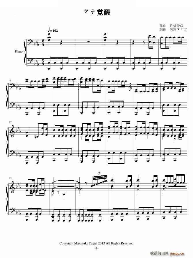 [钢琴谱]家庭教师OSTツナ覚醒 动漫影视