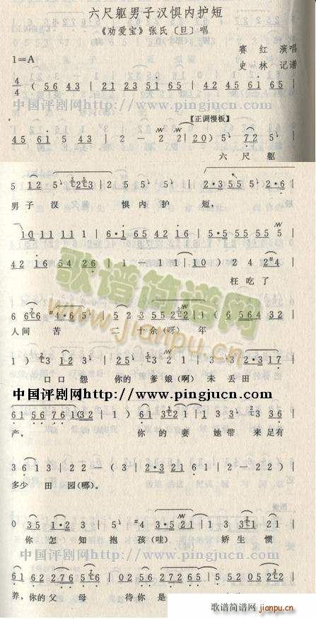 [京剧曲谱]劝爱宝 六尺躯男子汉-评剧