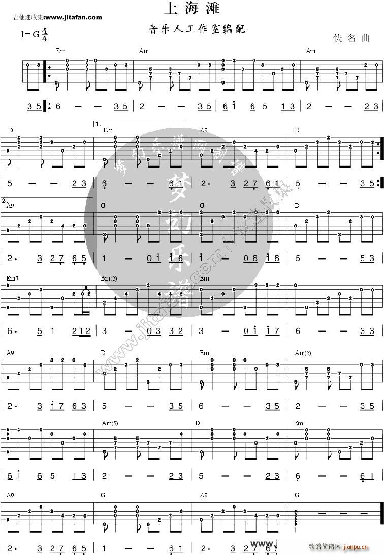 [二胡谱]上海滩(同名电视剧主题歌)[二胡曲谱] 未知
