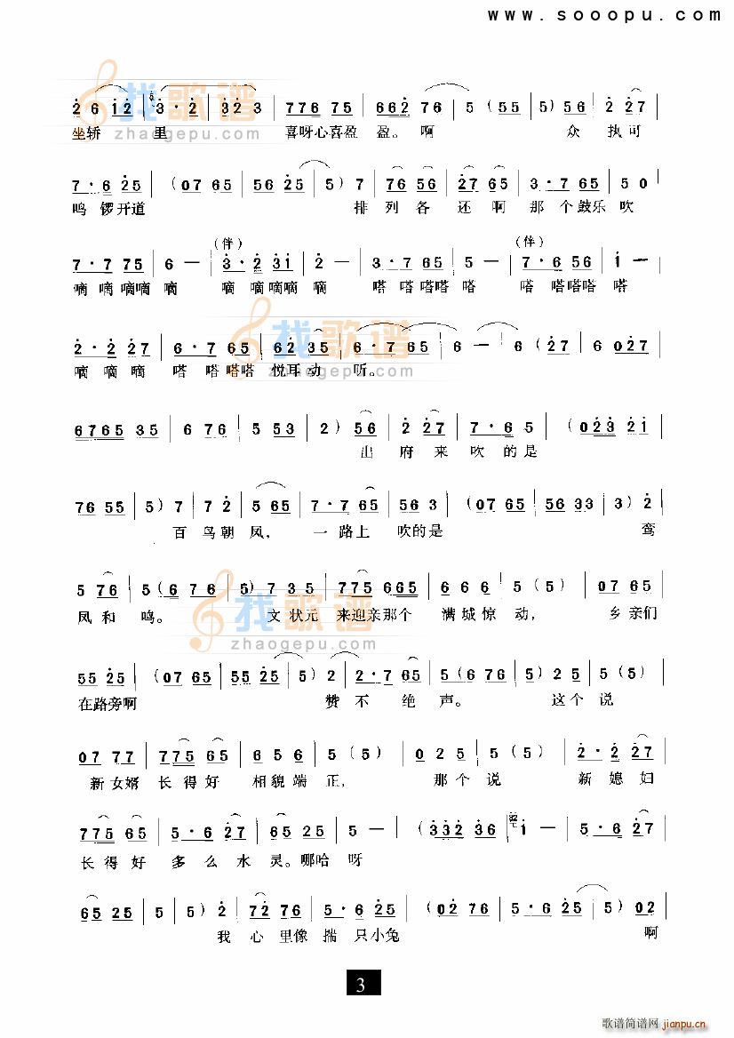 [豫剧曲谱]凤莲姐出嫁时 抬花轿 豫剧 旦角唱腔