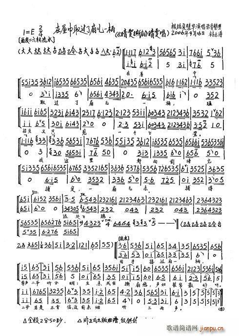 [三字歌谱]清沙扇(扬州民歌) 未知