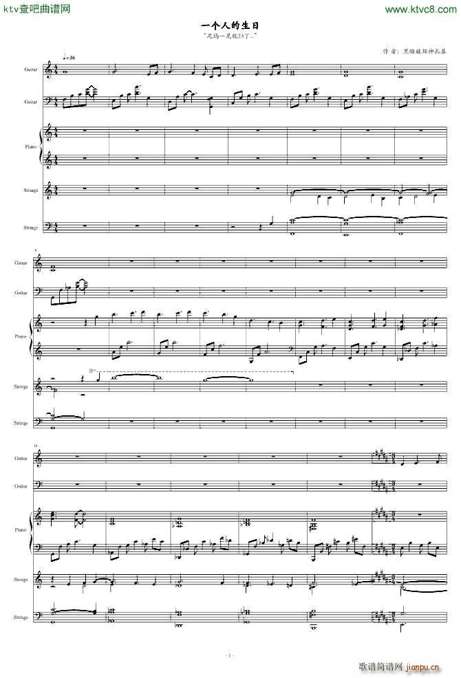 [钢琴谱]一个人的生日 黑暗破坏神扎基