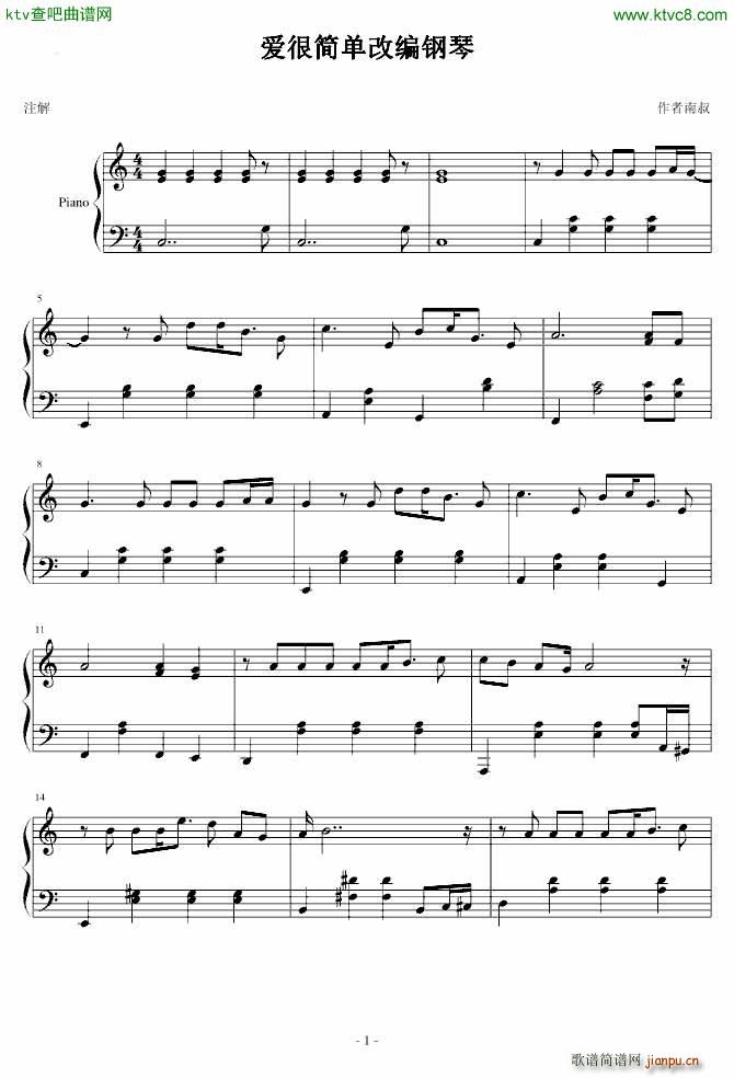 [钢琴谱]爱很简单 非常简单的钢琴版 陶喆