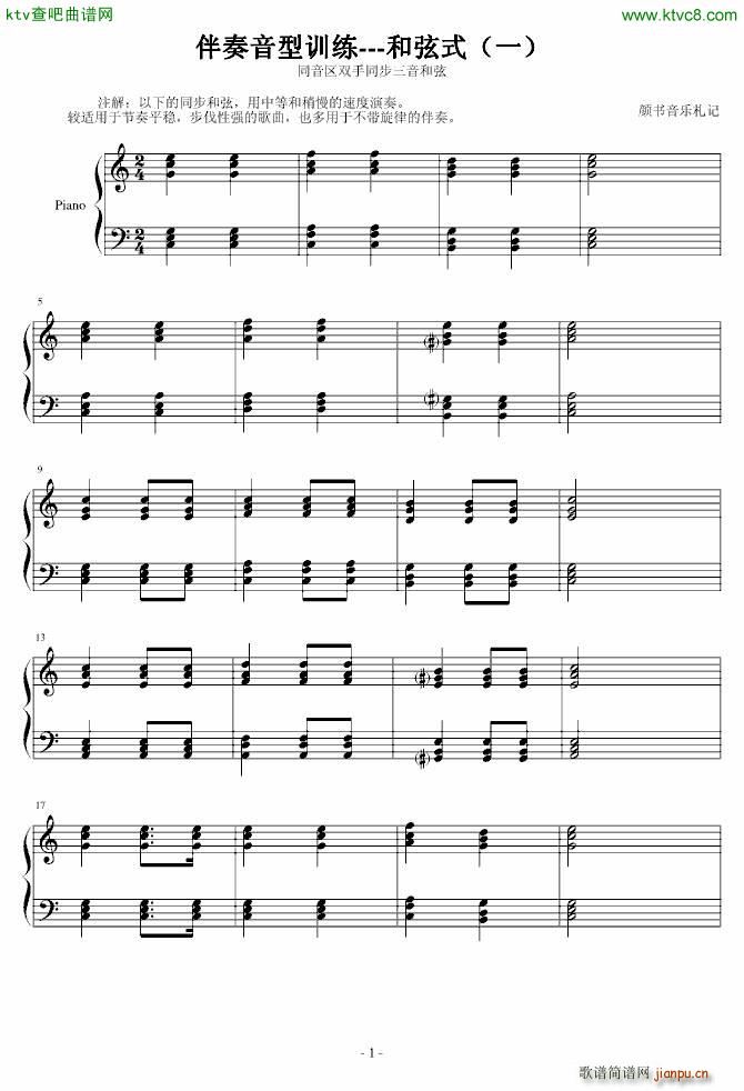 [钢琴谱]伴奏音型训练--和弦式(一)-钢琴谱(钢琴曲)-巫女多多阿嚏