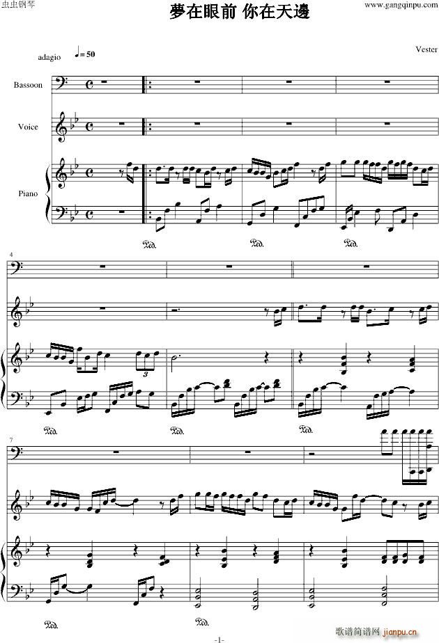 [钢琴谱]夢在眼前 你在天邊 Vester