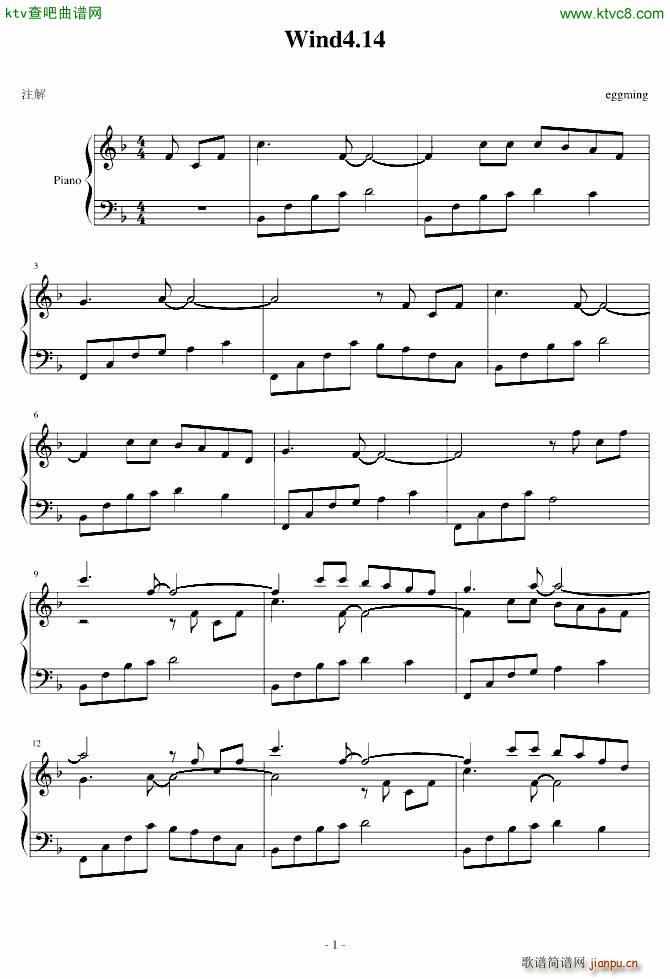 [钢琴谱]火影忍者主题曲Wind-钢琴谱(钢琴曲)-火影忍者