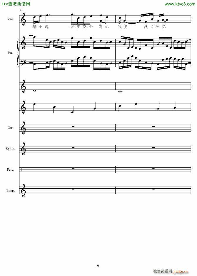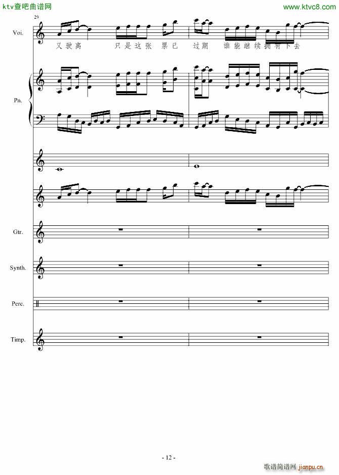 [五字歌谱]爱人已离去 范琳琳 上传者:乐友