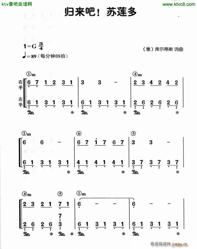 [钢琴谱]归来吧 苏莲多 双手钢琴弹奏