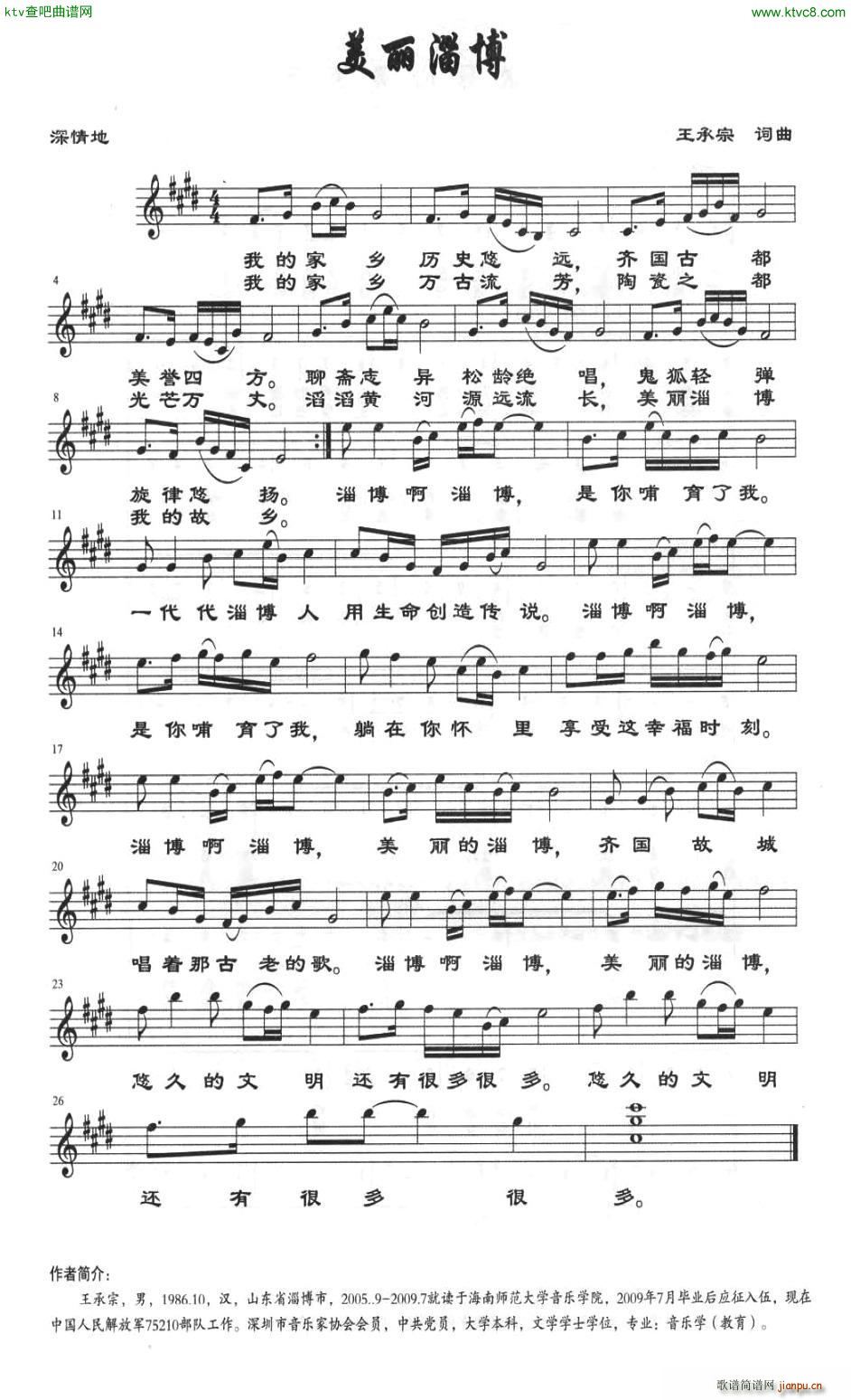 [四字歌谱]美丽淄博