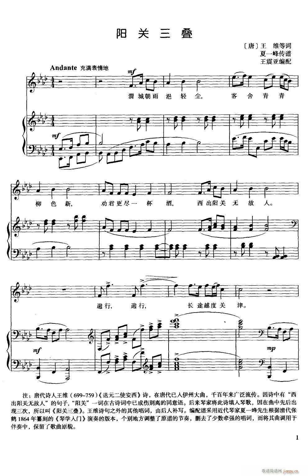 [四字歌谱]阳关三叠 王维