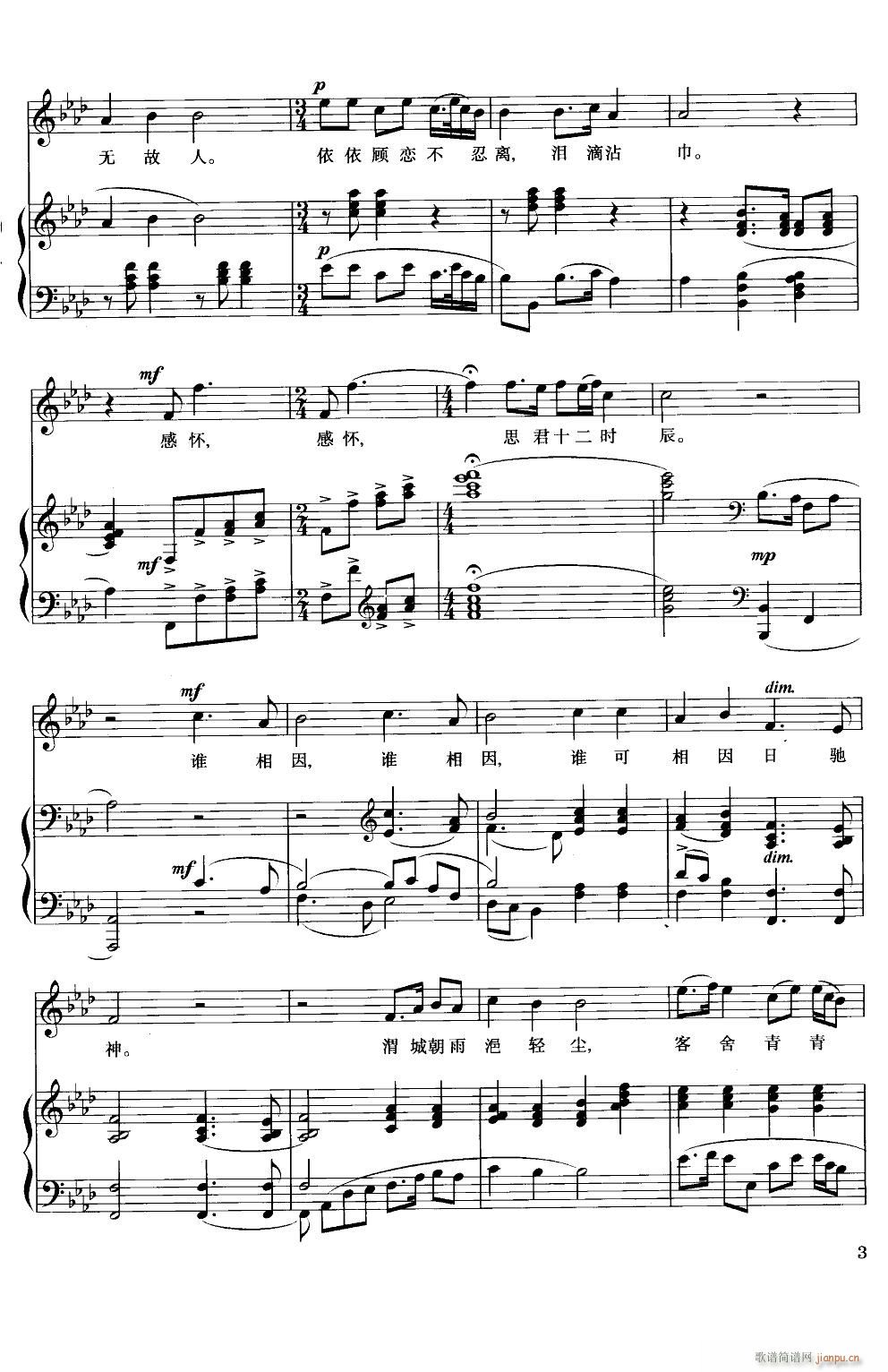 [四字歌谱]阳关三叠(简谱/五线谱对照)
