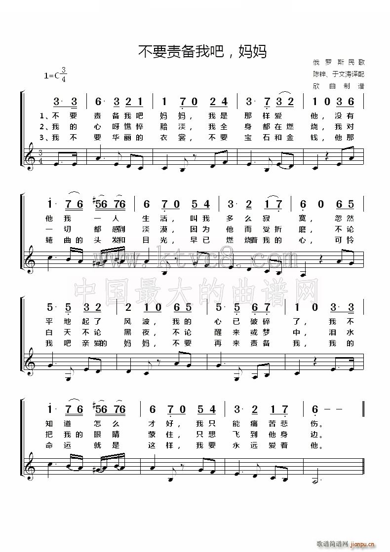 [九字歌谱]好妈妈,你不要骂我 柳德米拉·济金娜演唱