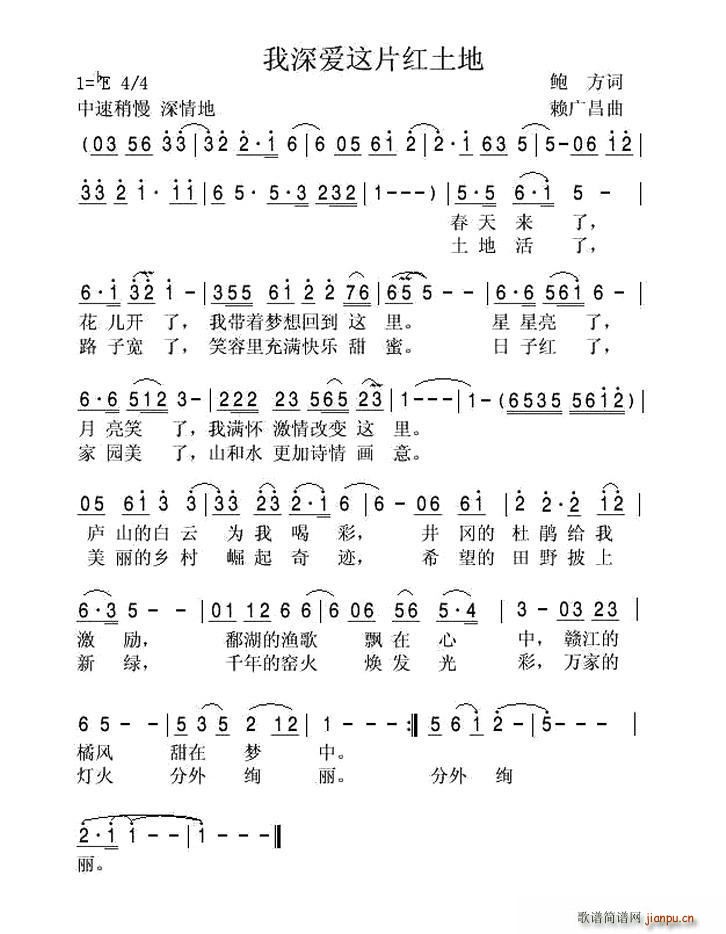 [八字歌谱]我深爱这片红土地