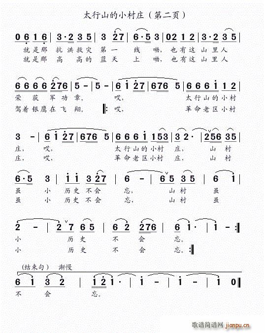 [五字歌谱]在太行山上(五线谱/简谱对照)