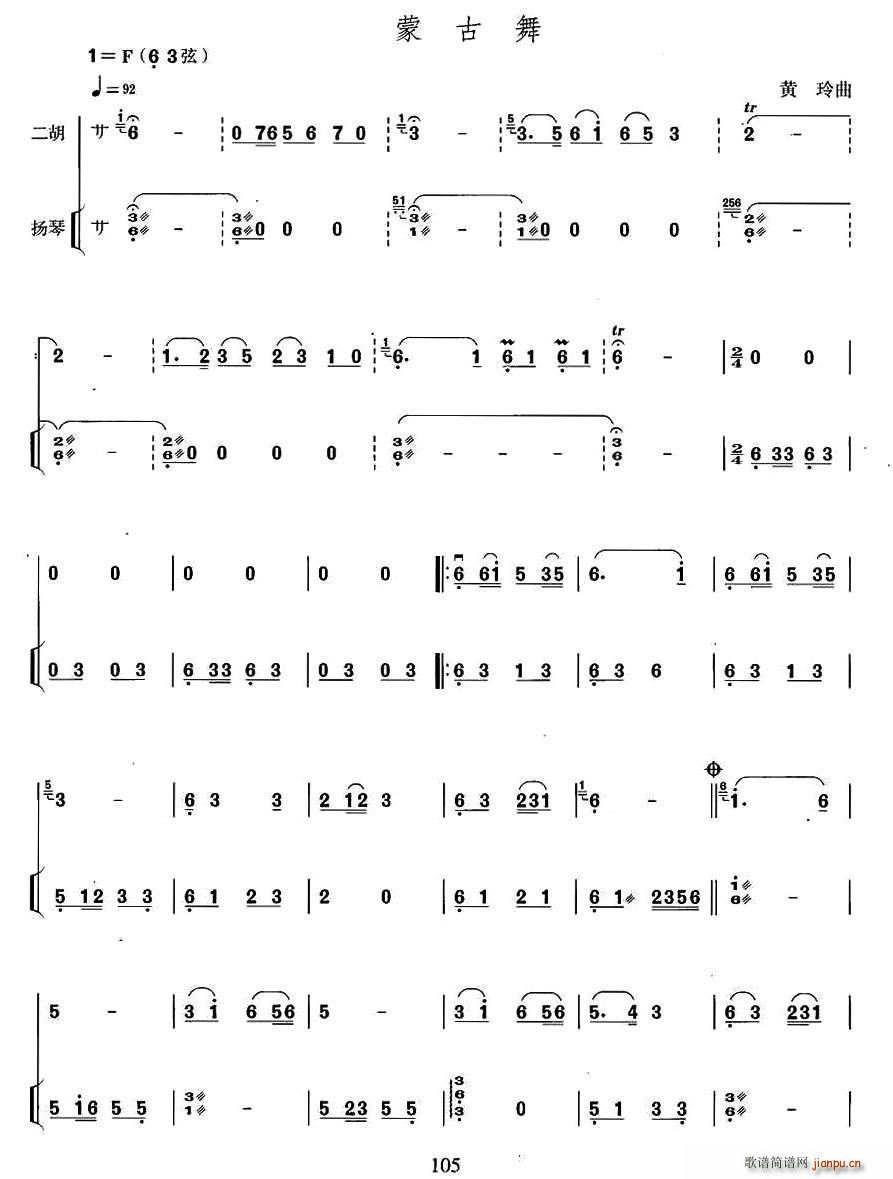 蒙古舞 扬琴伴奏谱(古筝扬琴谱)1