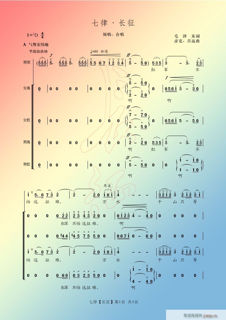[其他乐谱]七律·长征 歌曲类 合唱谱 简谱合唱