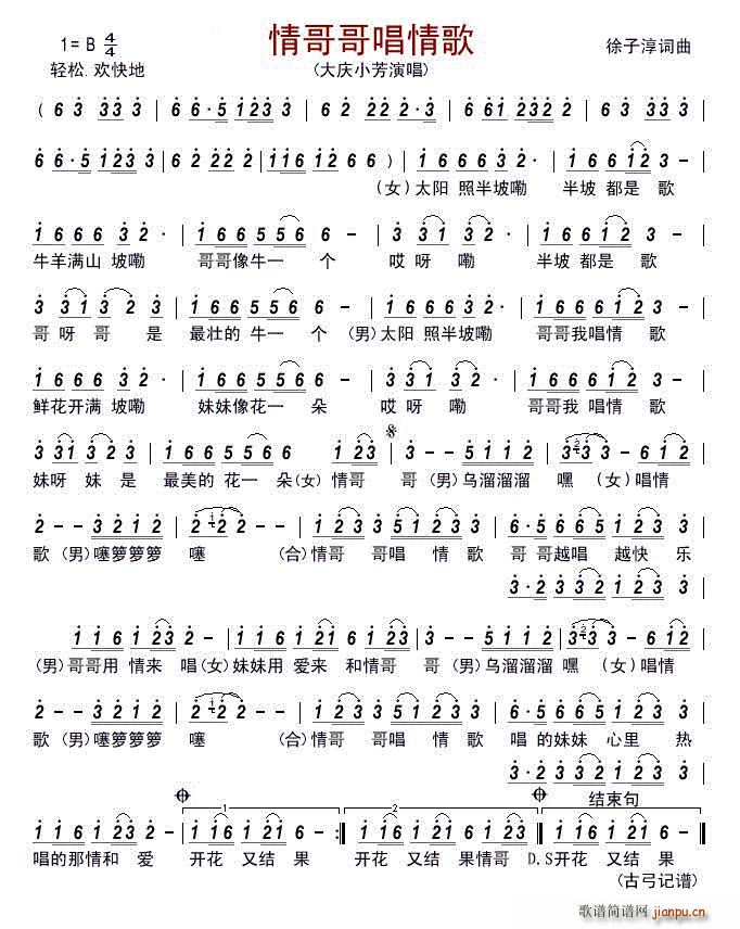 [十字及以上]情哥哥唱情歌简谱 -大庆小芳