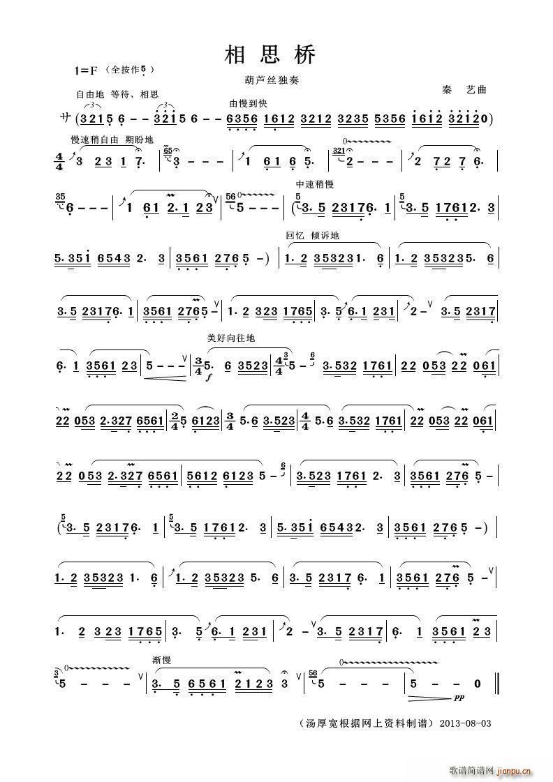 [葫芦丝谱]相思桥(葫芦丝独奏) 名吹奏