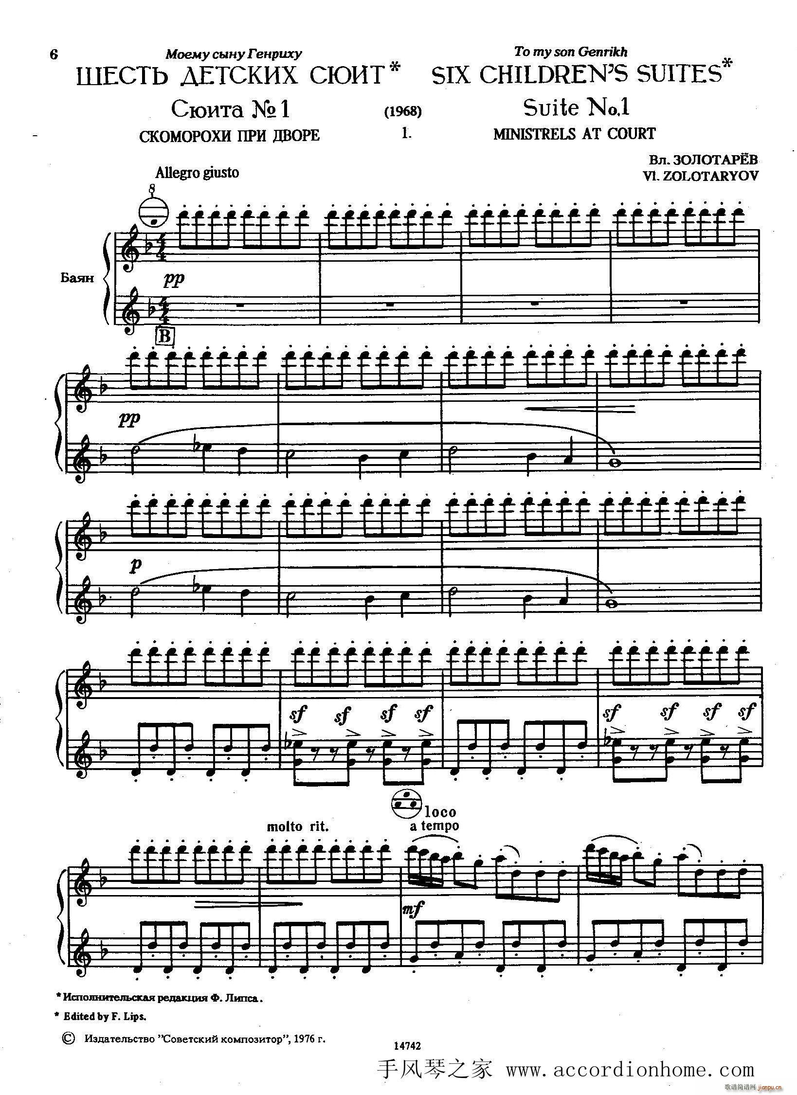 [手风琴谱]佐罗塔耶夫-六首儿童组曲之一