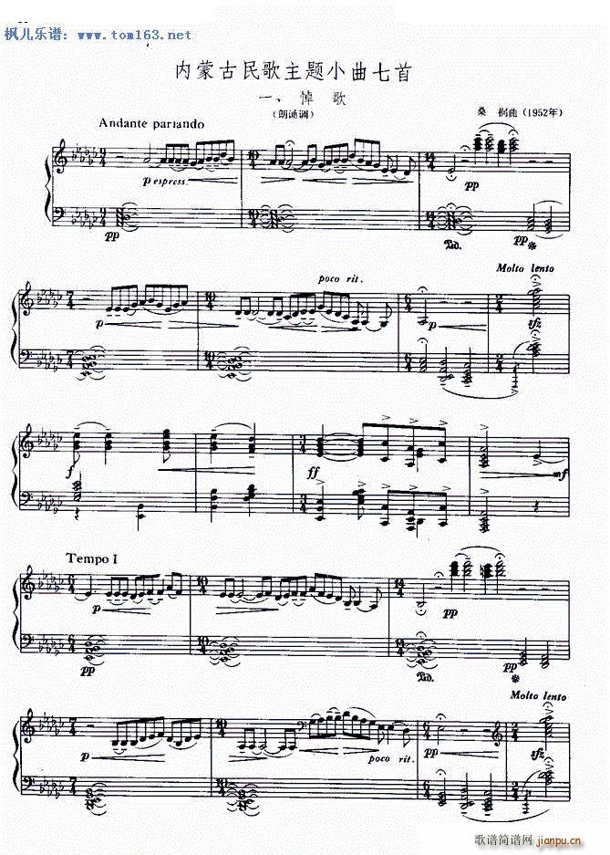 [钢琴谱]钢琴 内蒙古民歌主题小曲七首