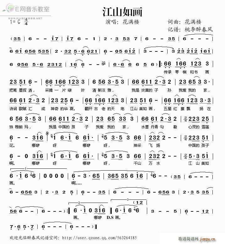 [二字歌谱]江山 (1=F4/4晓光词印青曲吴克强记谱)