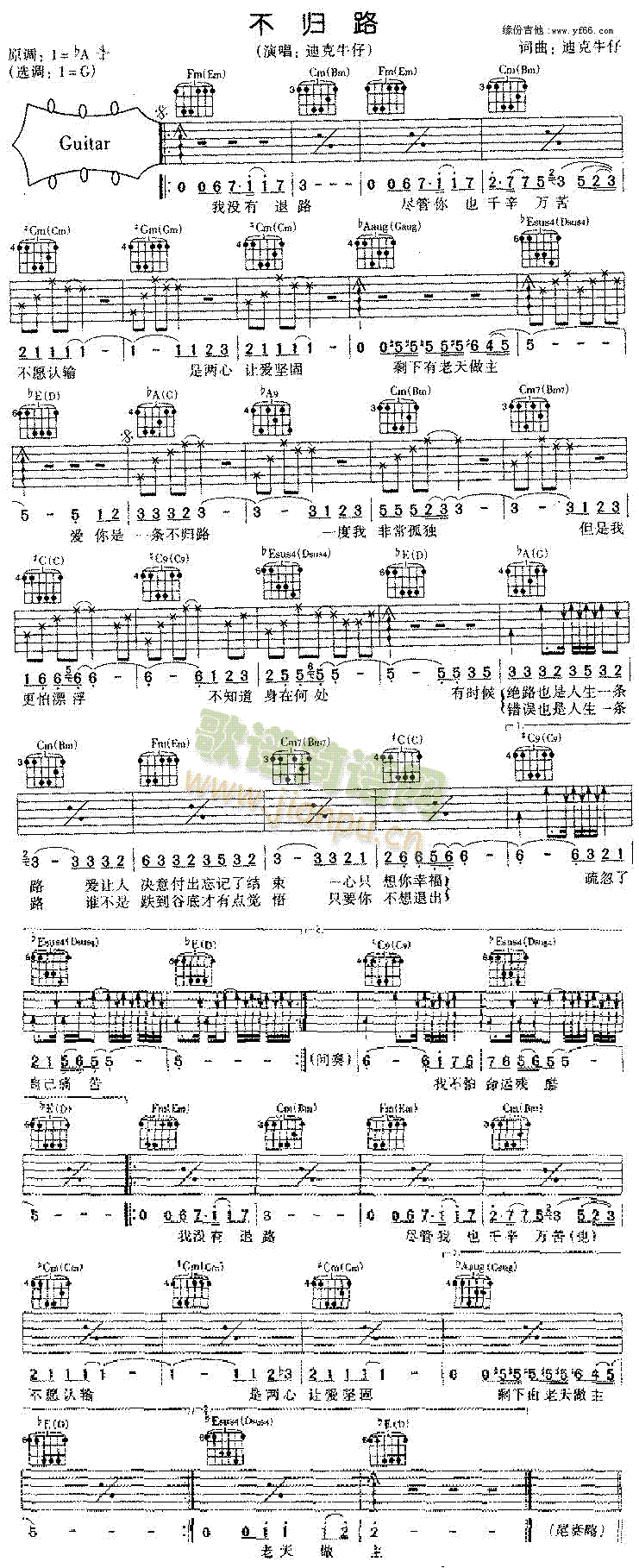 [吉他谱]迪克牛仔-不归路 迪克牛仔