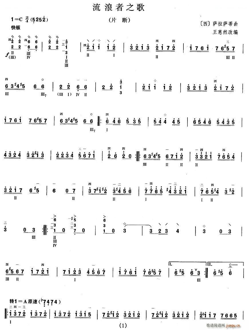 柳琴九级 流浪者之歌 柳琴谱