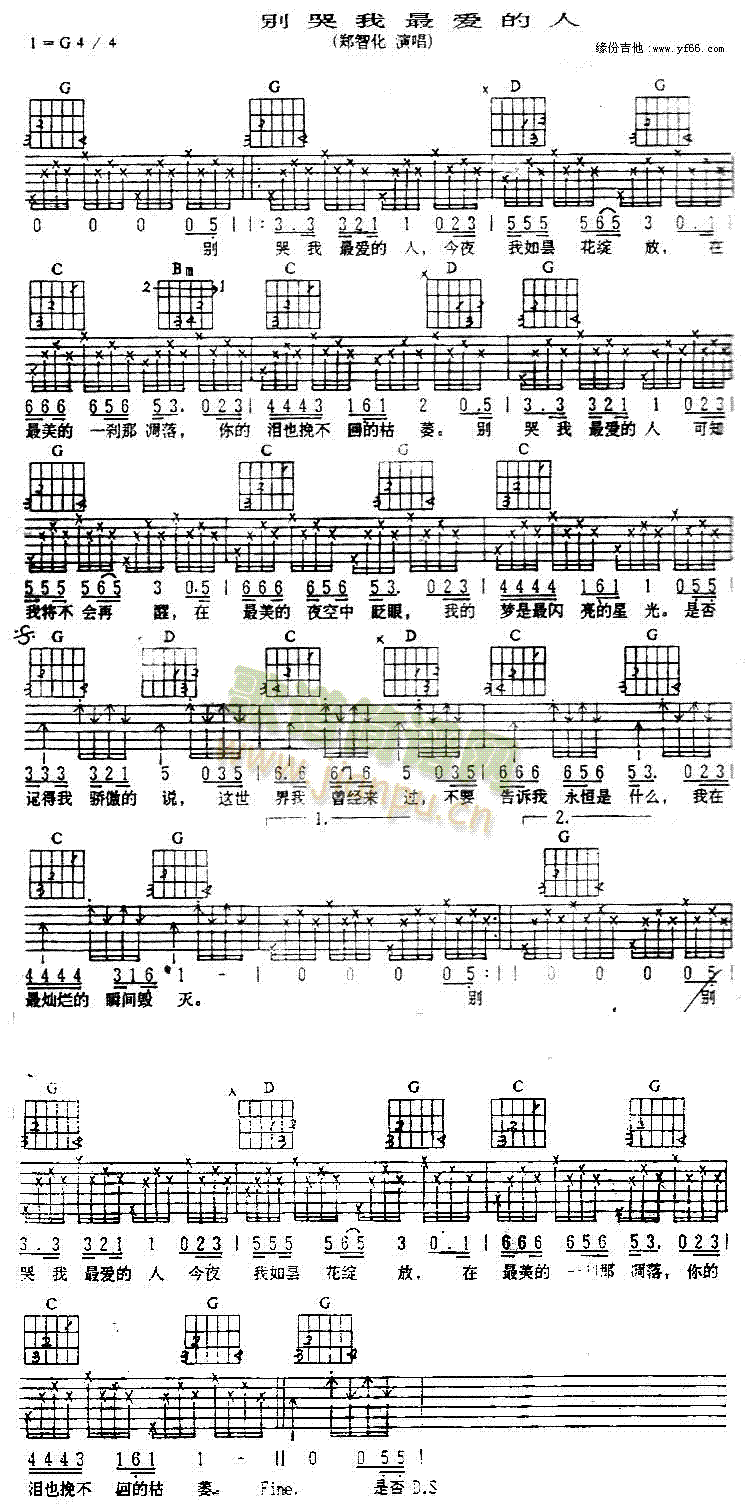 [吉他谱]别哭我最爱的人 郑智化